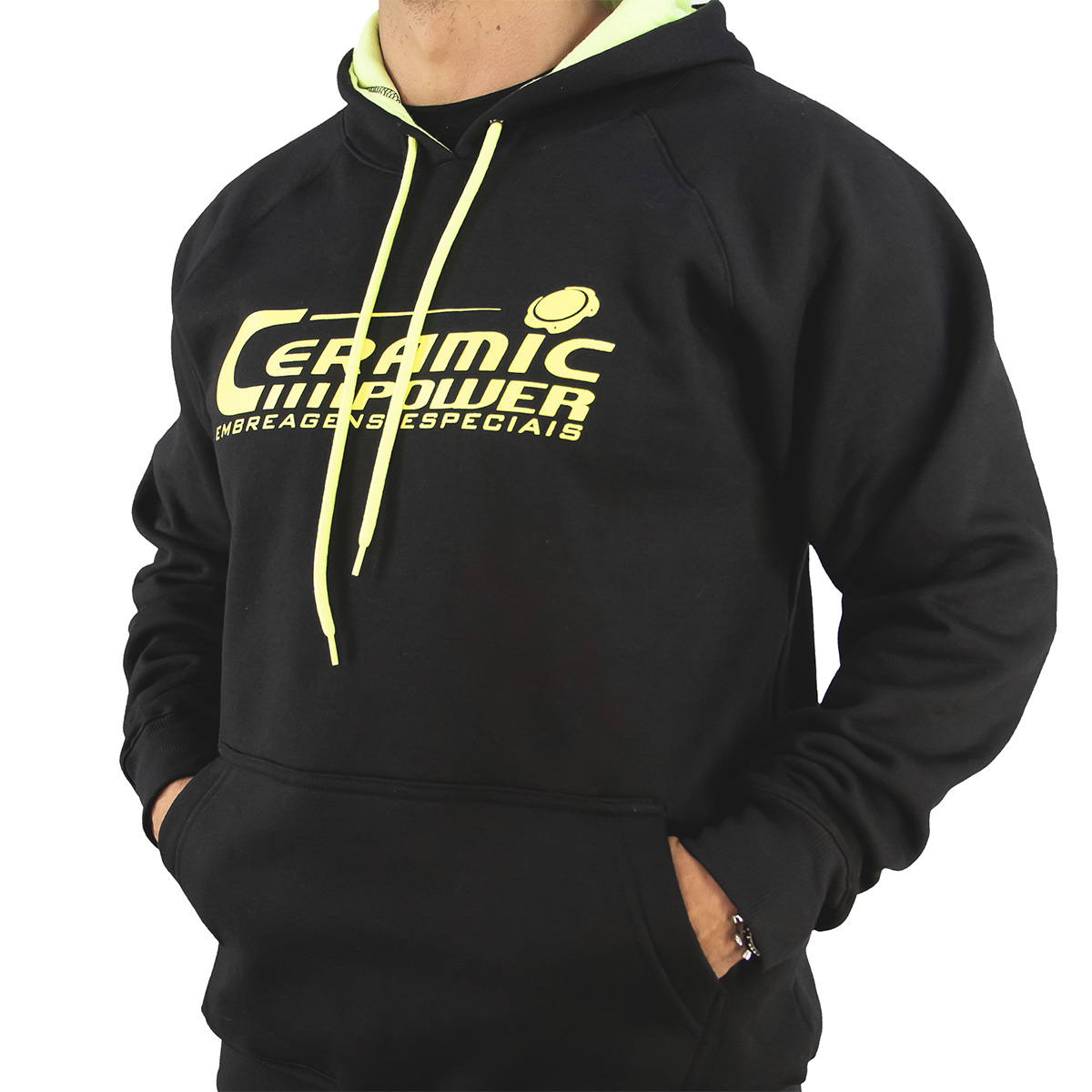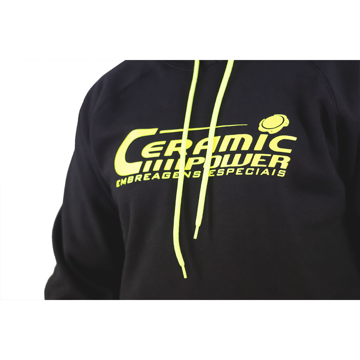 Blusa Moleton Preta com Logo Ceramic Power Amarelo Neon